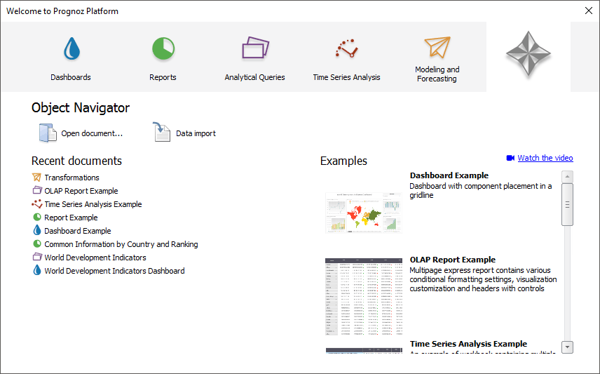 Designing business application. The example shows structure and objects of developed web application for end users using Foresight Analytics Platform extensions.