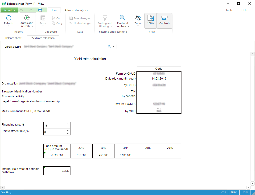 The Original and Analytic Reporting object contains examples of regular reports prepared for printing based on standard reporting data forms. These reports can be used to view source data and also to print reporting forms.