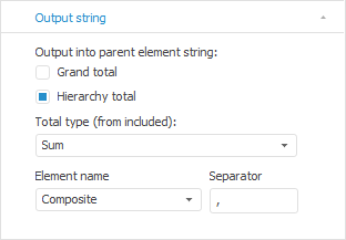 If the table displays elements of hierarchical dimension of various hierarchy levels, use the Output String side panel tab to display total or hierarchy total in the parent element string.