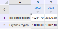 Table layout includes names of the rows and columns, which are displayed by default (A, B, C, and so on for columns; 1, 2, 3, and so on for rows).