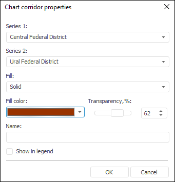 2. Set the corridor name to be displayed in the internal or external chart legend. The following name is used by default: Series 1 name – Series 2 name.