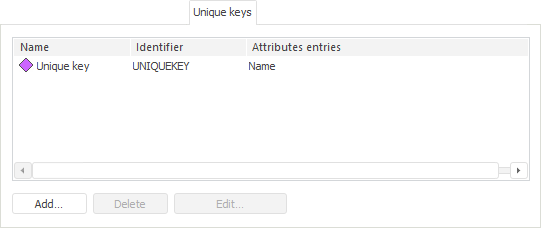 To create and set up unique keys, use the Unique Keys tab.