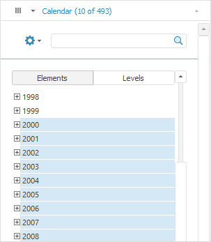 When working with elements selection of calendar dimension it is available to choose selection mode: elements or levels.