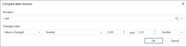 Compares current and specified versions of time series values. The rule is relevant if series are stored in version time series database.