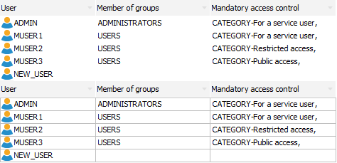 NOTE. Column displaying settings are reset for administrators on toggling the mode of separation of roles between the information security administrator and application administrator. In this case default settings are applied.