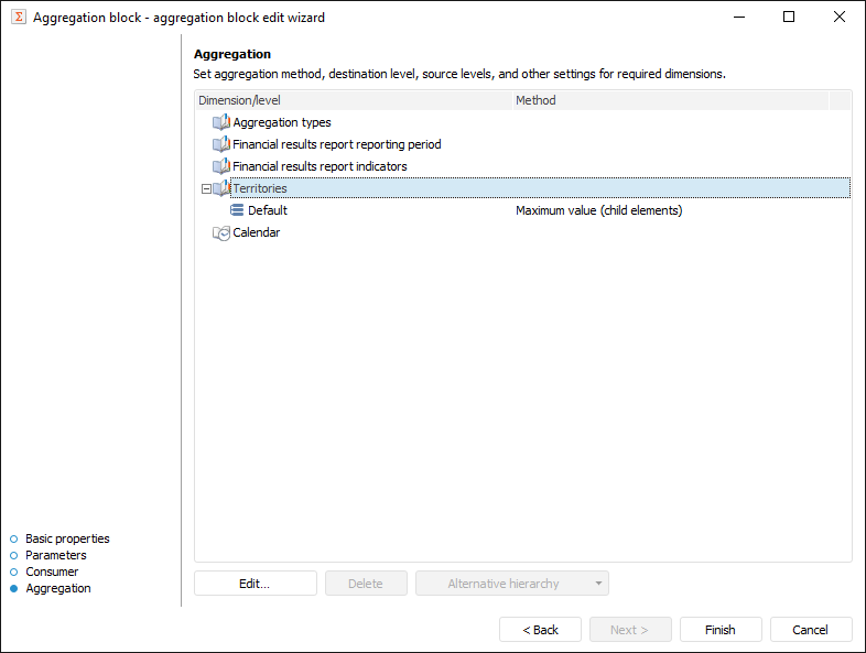 As a result, dimension aggregation is set up. If required, similarly set up aggregation for the next dimension.
