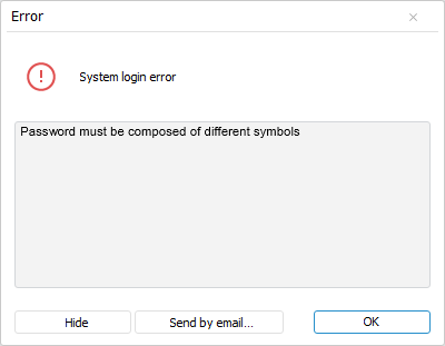 After executing the example the window that contains description of system login error appears. After the Details button is clicked, this dialog box looks as follows: