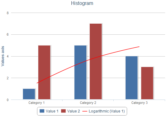 After executing the example a tend line is placed on the HTML page containing the chart. Considering the settings, the chart will look as follows: