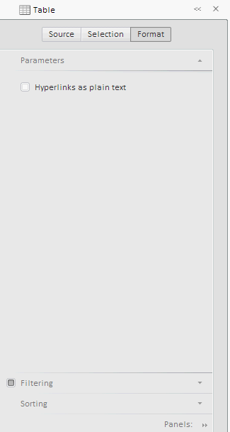 After executing the example the wizard in the express report properties panel is switched to the Table state (Format):