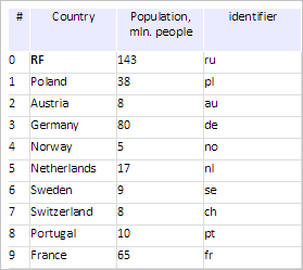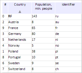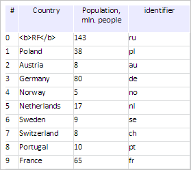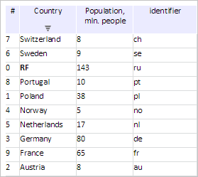 Click again on the Country column. After this action table cells are sorted in descending order by means of row values in the Country column without considering HTML tags:
