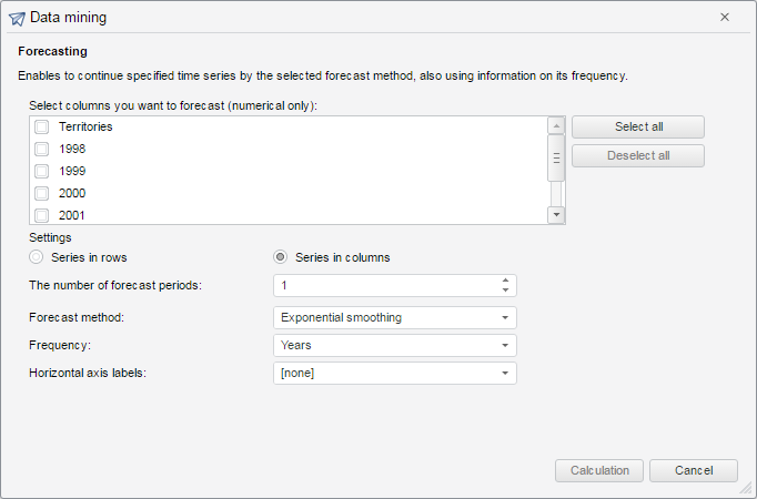 The ForecastView class implements view of the Forecasting dialog box.