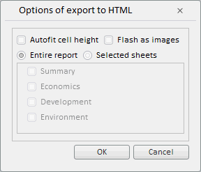 The HtmlExportDialog component represents the dialog box to export the regular report to the *.html format.