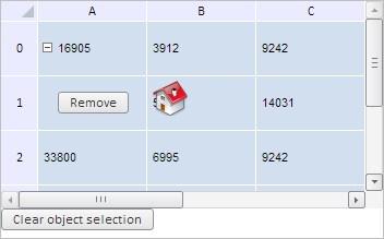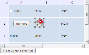 To execute the example, the HTML page must contain the TabSheet component named tabSheet (see Example of Creating the TabSheet Component), and the cell under coordinates (1, 1) must contain an icon as an object of the PP.Ui.TabSheetObject type named tabSheetObject (see the page with description of the TabSheet.addObject method). Select this icon, get width of its border, coordinates of its top left and bottom right corner, and then add a button that will remove object selection: