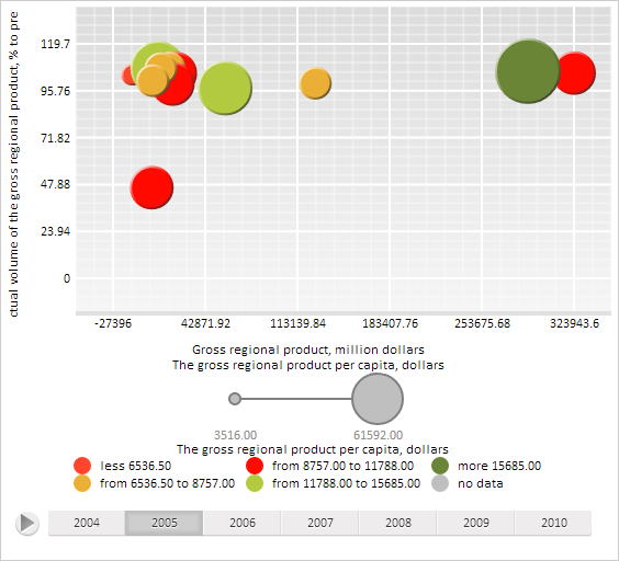As a result of executing the example data of the next year is loaded in bubble chart: