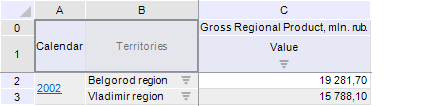| 2 | Rows. Dimensions names in rows from sidehead. |