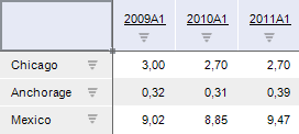 This table contains the city dimension in rows, the calendar dimension in columns, and the factor dimension is fixed.