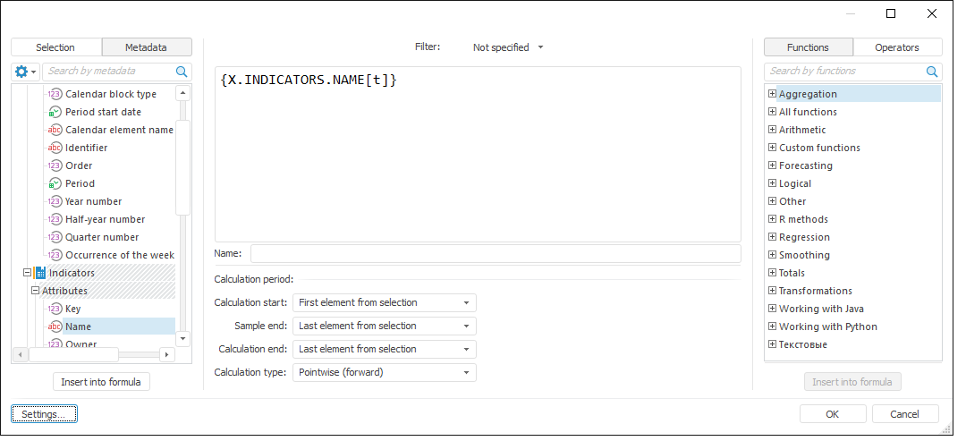 After executing the example the expression editor opens. The following formula is created in the editor: