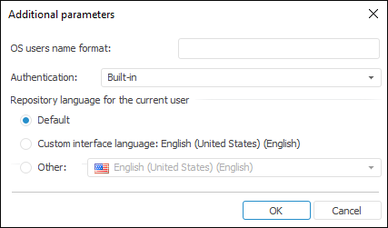 To set up parameters of the current open repository, use the Parameters dialog box.