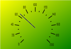 After executing the example, on clicking the button, formatting parameters of the speedometer displayed in the SpeedometerBox1 component are changed. The gradient fill is set for speedometer background.