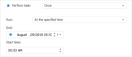 End. Selecting the checkbox enables the user to set time and date of the las task execution. By default the setting is deactivated