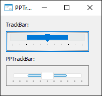 Unlike TrackBar, style of the PPPTrackBar component does not depend on style and settings of the operating system. Functional settings and features of the PPTrackBar and TrackBar components are the same.