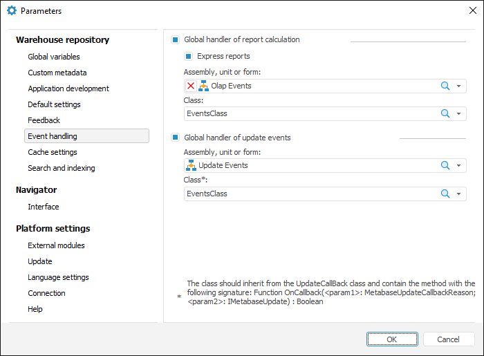 NOTE. The class must inherit the UpdateCallBack class and contain the method with the following signature: