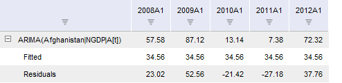 After the method is applied, in the workbook, based on each selected series a calculated series with a name of the ARIMA(<Series_Name>) type is created, containing the calculation results. For example: