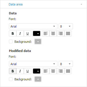 Background color. If the checkbox is selected, cell background in the table heading can be changed. Use the drop-down color palette to select a color.