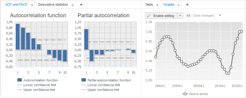 Displaying or closing of tabs on the results panel. Select the checkbox that corresponds to the tab.