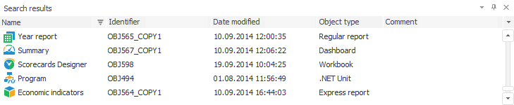 After executing the operations, the selected object in the search results is selected in the objects list.