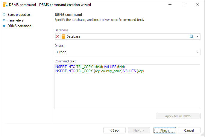 A DBMS command object is used to execute the following operations on repository database objects: