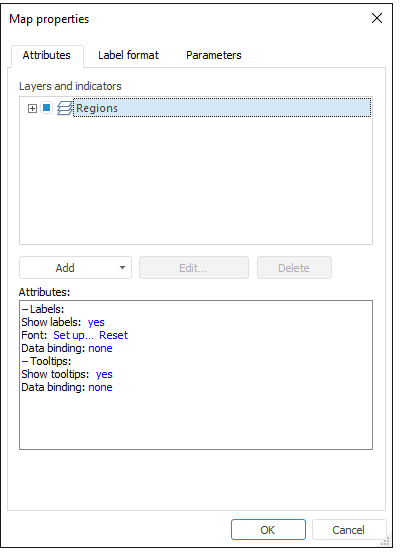 Select the required layer in the Layers and Indicators list and set the following parameters in the Attributes area: