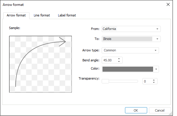The left part of the tab contains a sample arrow based on the specified parameters. Changing any parameter (except for the From and To parameters) refreshes the sample.