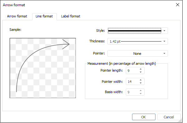 To set up arrow line format, use the Line Format tab in the Arrow Format dialog box.