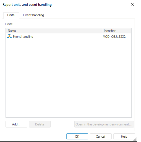 To work with the list of units available for use in the regular report, go to the Units tab in the Report Units and Event Handling dialog box: