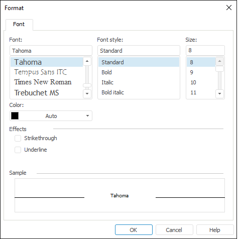 The Sample area shows the text after applying selected parameters. Make sure that text corresponds to the expected result.
