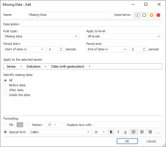 NOTE. The validation rule is available if data source is time series database or standard cube with calendar dimension.