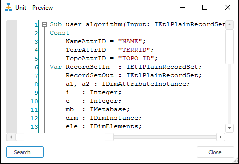 For objects of the Form, Unit, Query, .NET Form, .NET Unit, Procedure and DBMS Command classes text is available to view.