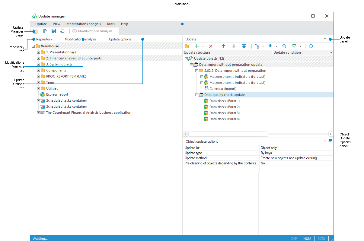 To update objects, log in to the system under credentials of administrator or member of the Administrators group.