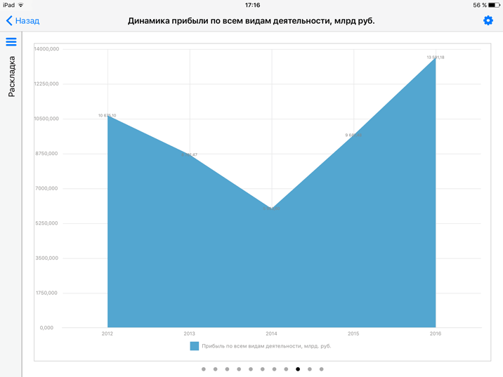 В полноэкранном режиме один блок занимает весь экран. Для настройки блока нажмите кнопку . Настройки блоков аналитической панели совпадают с настройками аналогичных визуализаторов экспресс-отчёта.