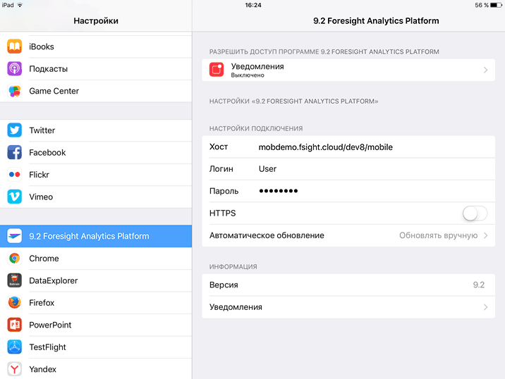 Обновить список отчётов, доступных на сервере мобильного приложения.