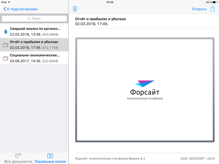 отчёты в формате *.ppmobile при открытии будут сохранены в папку «Локальные копии». Если отчёты открываются повторно, то их локальная копия будет обновлена.