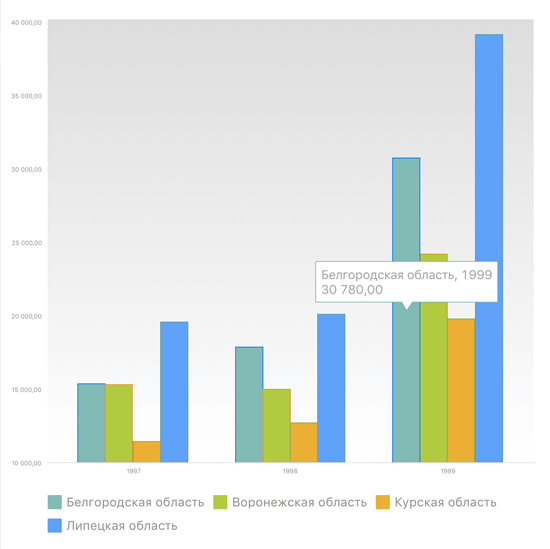 Подсказки используются для быстрого определения значений элементов представлений диаграммы.