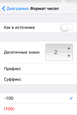 Отрицательные значения. Выберите один из вариантов для отображения отрицательных значений.