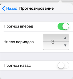 Для прогнозирования включите переключатель и задайте число периодов прогнозирования в появившемся поле.