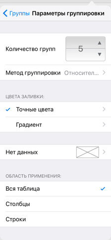 В разделе «Область применения» выберите метод группировки значений таблицы: