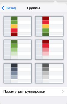 Условное форматирование по группам осуществляется в диалоге «Группы» (Таблица > Условное форматирование > Группы):