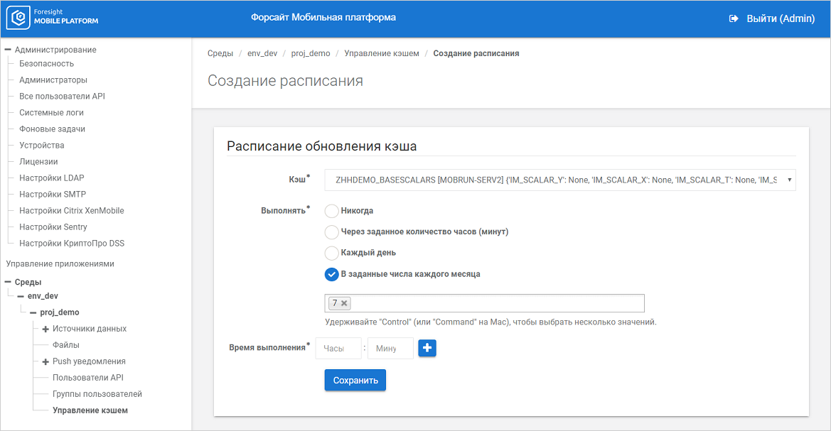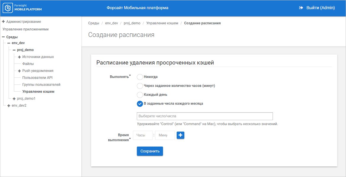 Удаление кэша с истёкшим сроком хранения. Для всех существующих кэшей задайте расписание удаления кэша с истёкшим сроком хранения, позволяющее избежать постоянного роста базы данных мобильной платформы. Срок актуальности кэша задается при импорте ресурса. Также удалить все устаревшие кэши можно вручную;