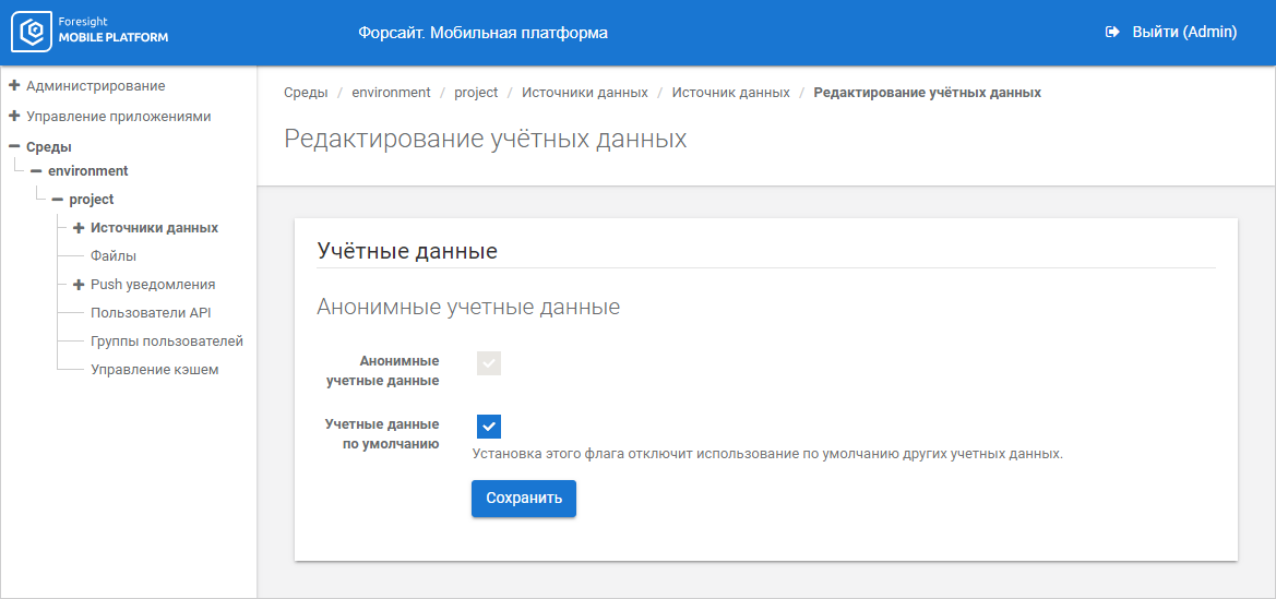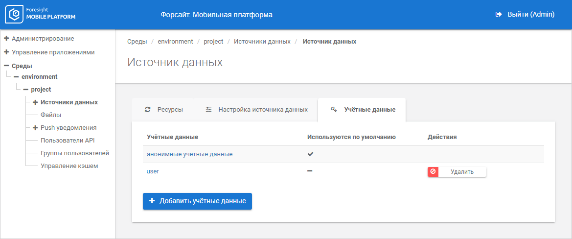 Для разграничения доступа к ресурсам добавьте учетные данные на вкладке «Учётные данные» в выбранном источнике данных: