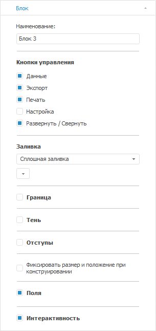 Для настройки базовых формата объекта используйте вкладку «Блок», расположенную на боковой панели.